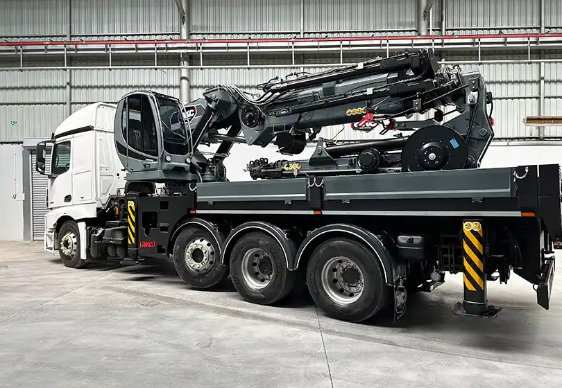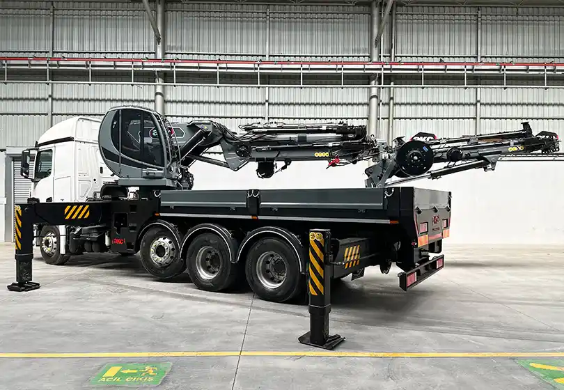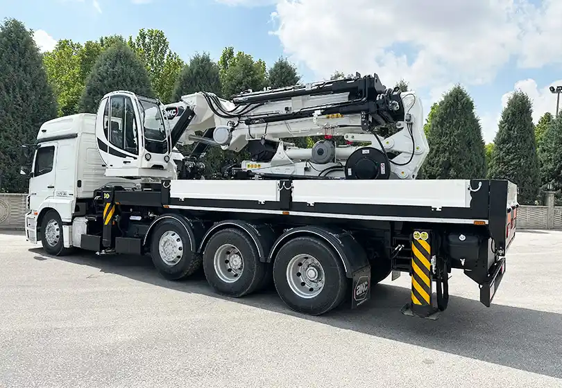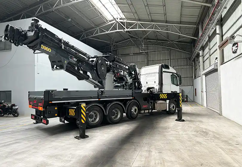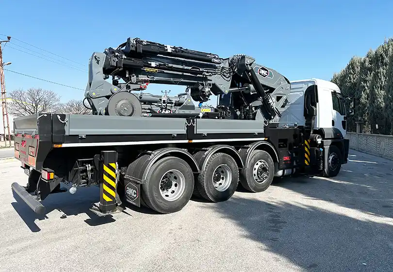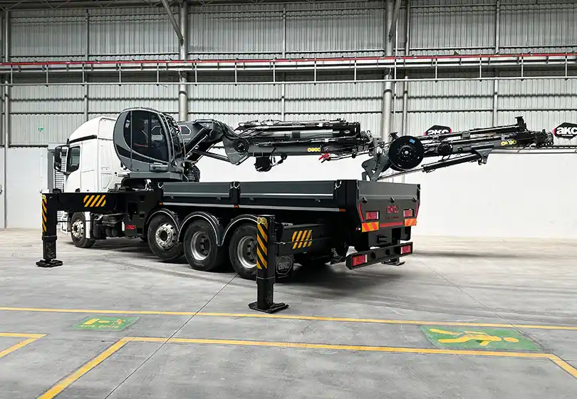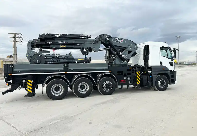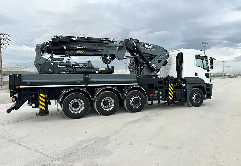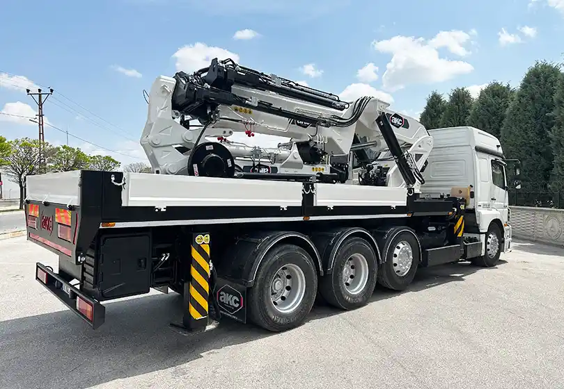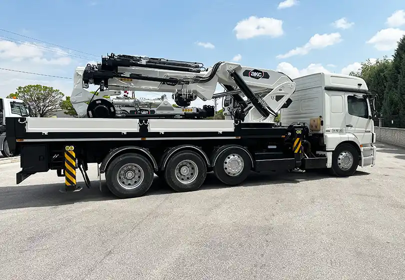 AKC 105.002 L6 / L4 Katlanır Bomlu Vinç, kompakt gövdesi, yüksek manevra kabiliyeti ve esnek erişim imkânı ile hem dar alanlarda hem de geniş sahalarda üstün performans sağlar. Çift kırma bom sistemi, yüklerin farklı mesafelerde ve açılarda güvenle kaldırılmasına imkân tanırken, dayanıklı gövde yapısı uzun süreli kullanımlarda dahi istikrarlı sonuç verir.