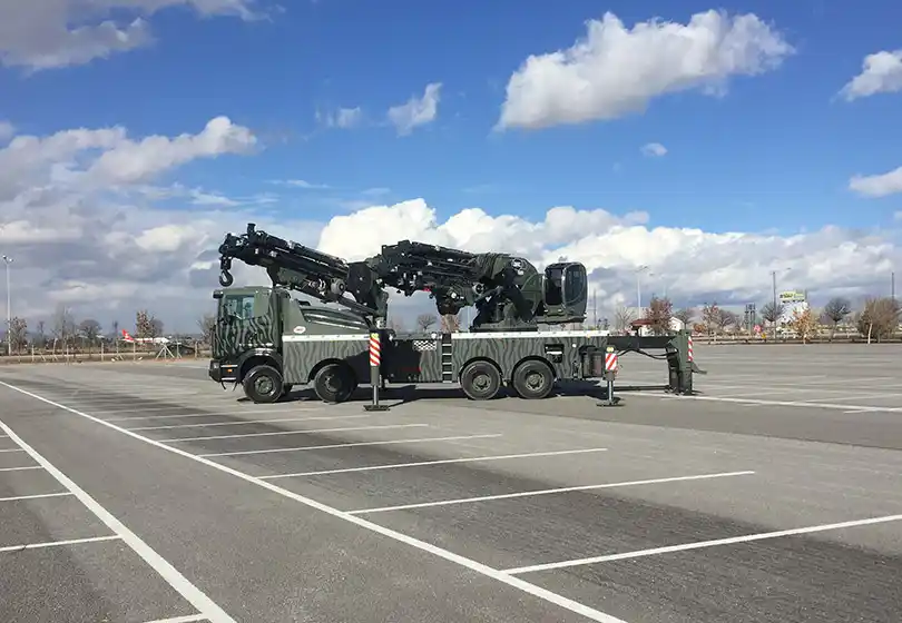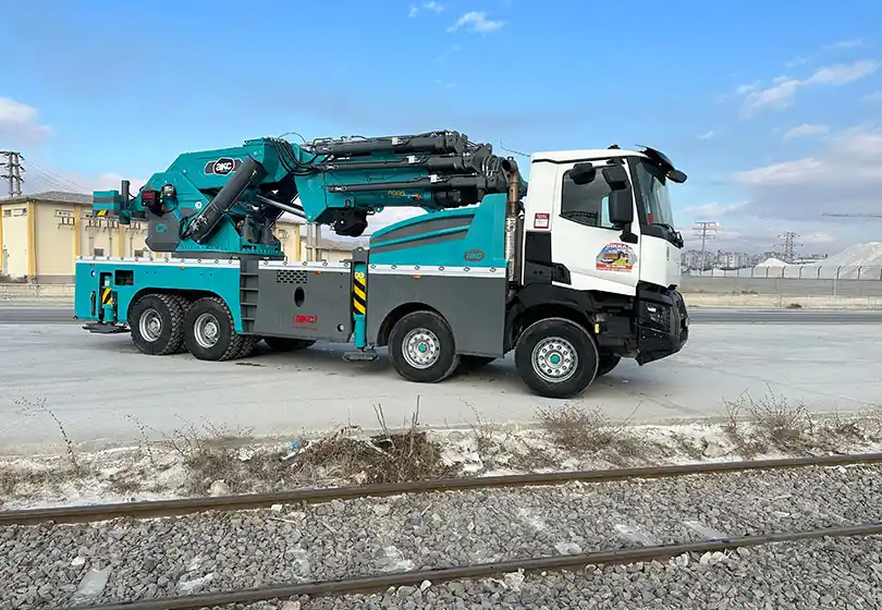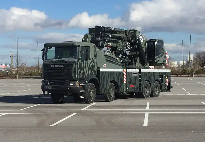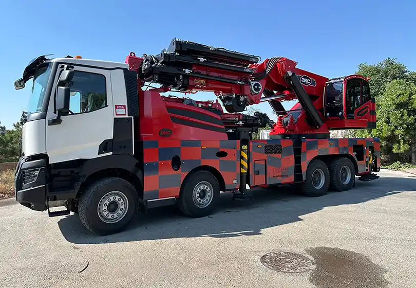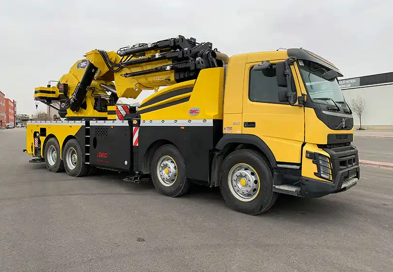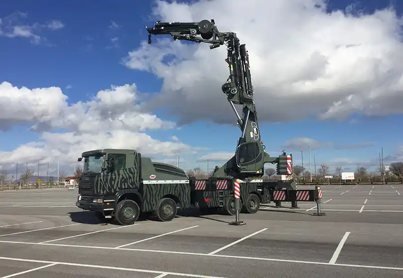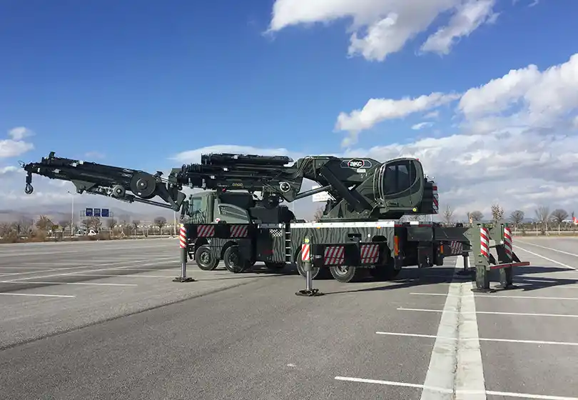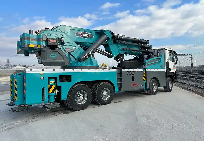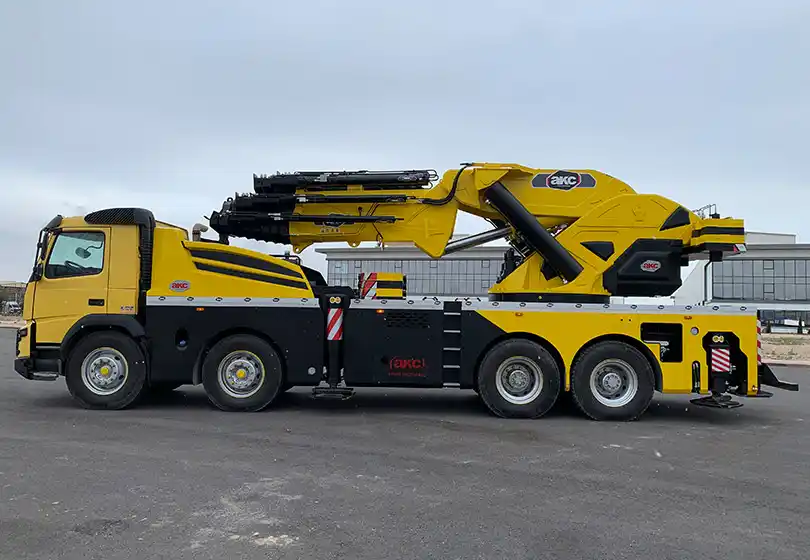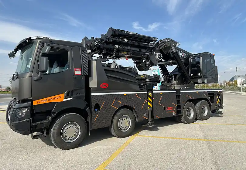 AKC 300.002 L8 / L6 Katlanır Bomlu Vinç, yüksek erişim imkânı ve güçlü kaldırma performansıyla geniş ölçekli projeler için geliştirilmiştir. Çift kırma bom sistemi sayesinde hem yatay hem dikey pozisyonlarda üstün çalışma esnekliği sunar. Kompakt katlanır bom tasarımı, dar alanlarda manevra kolaylığı sağlarken, uzun bom kombinasyonu geniş alanlarda yüksek erişim imkânı verir.