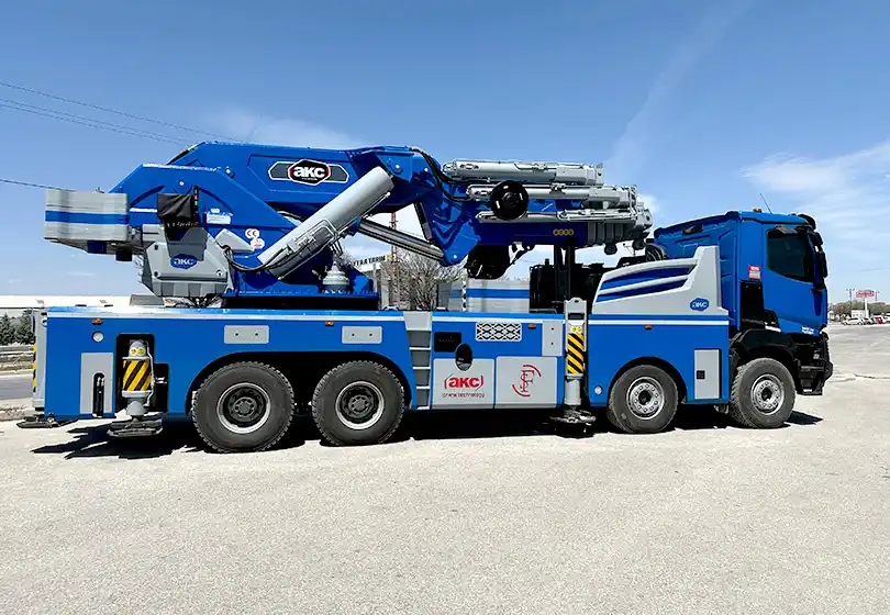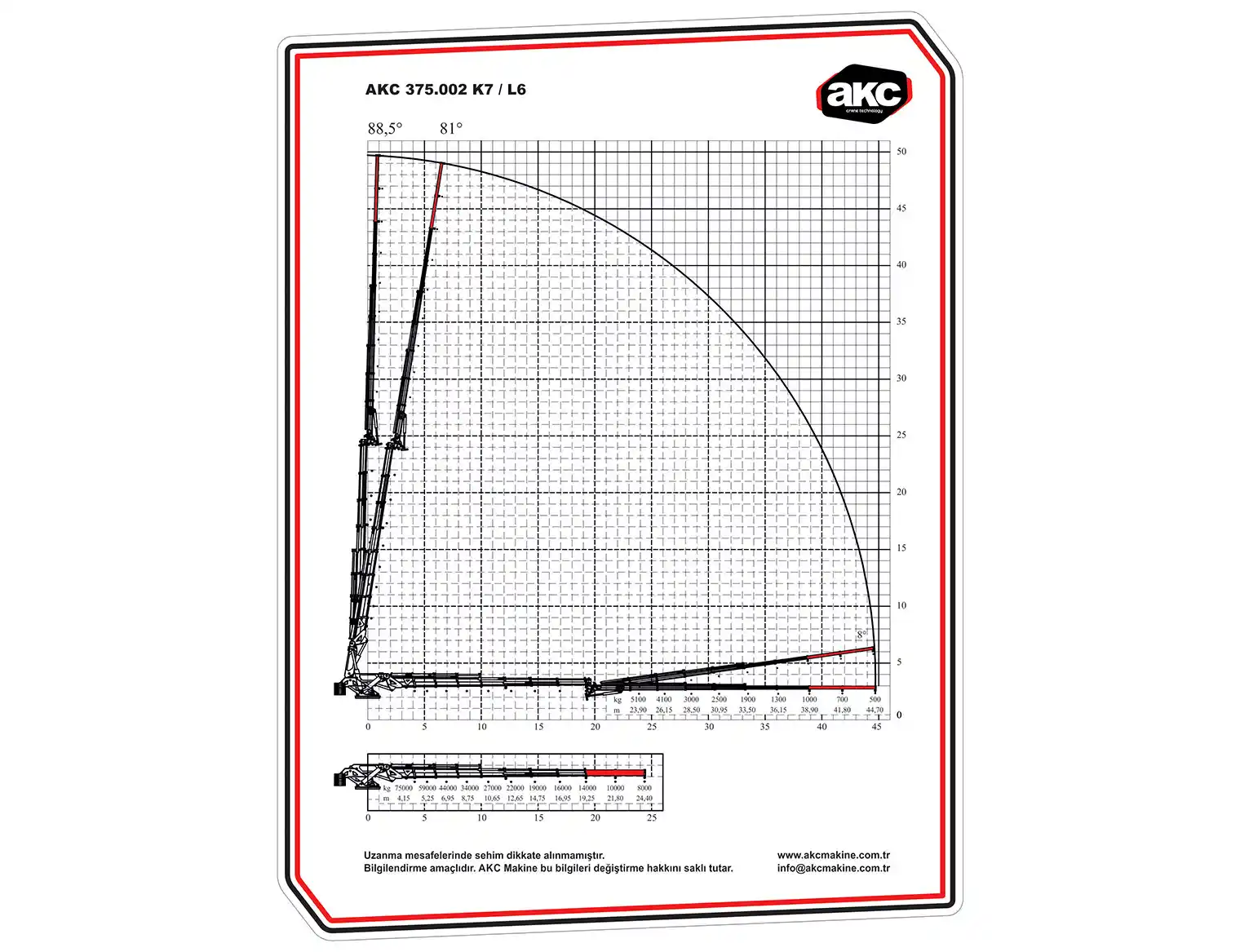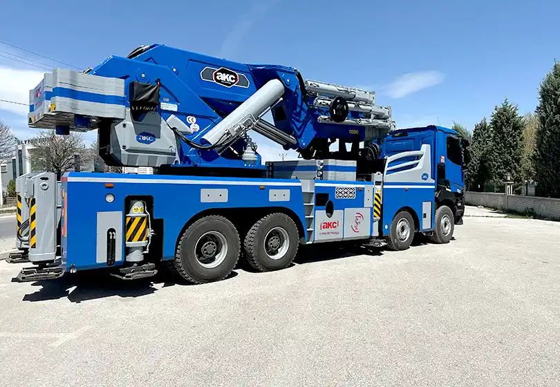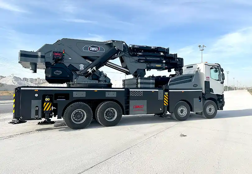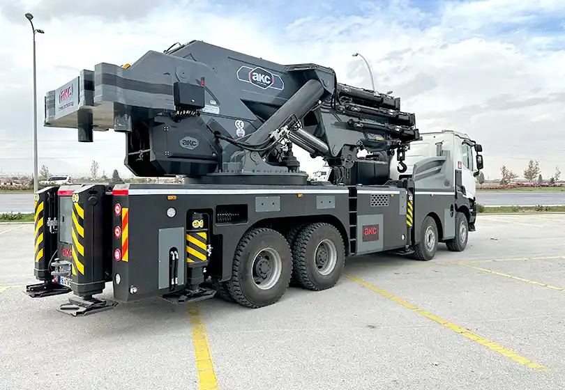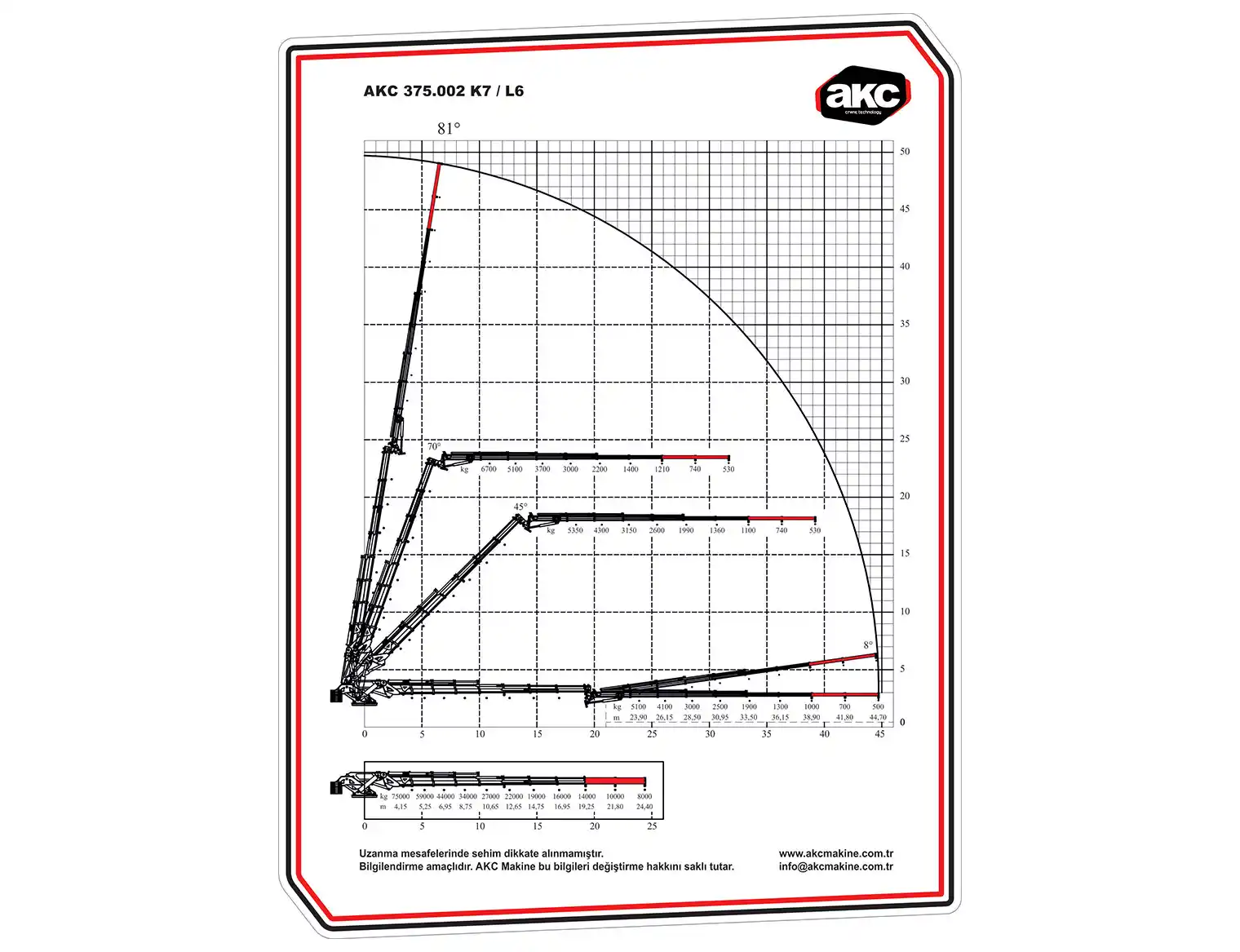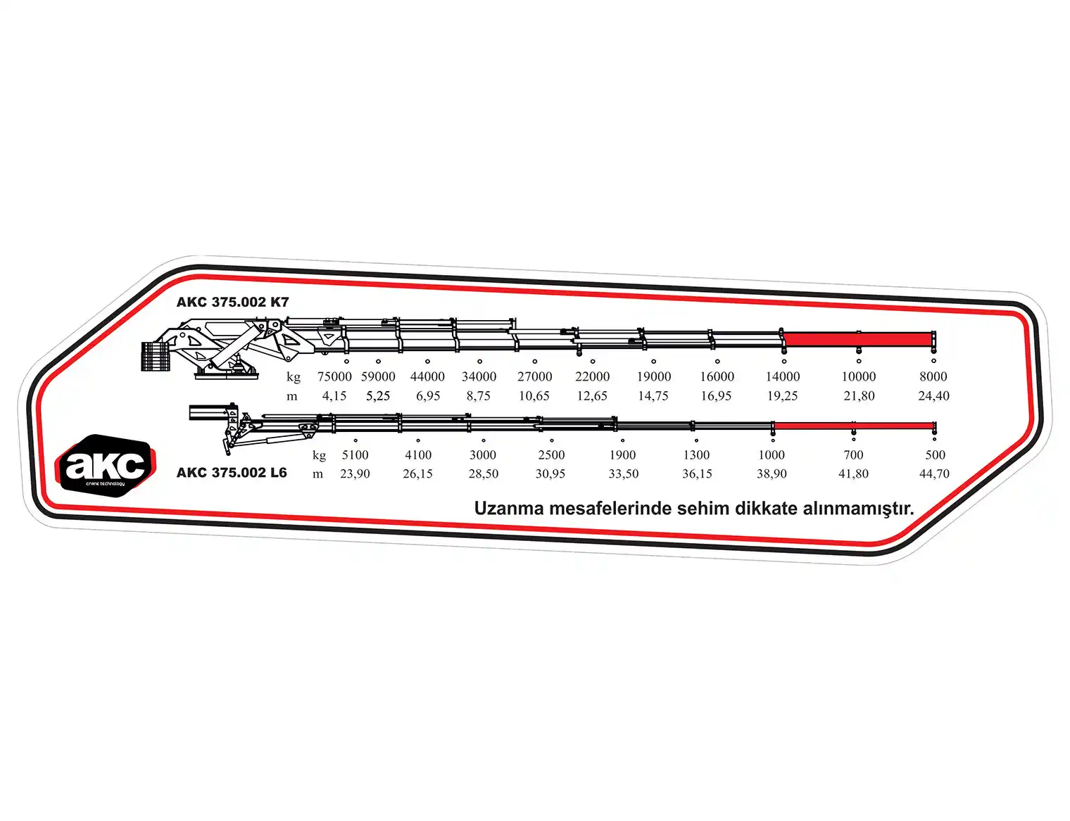 AKC 375.002 K7 / L6 Katlanır Bomlu Vinç, çift kırma bom sistemi sayesinde hem yatay hem de dikey erişimde maksimum esneklik sunar. Kompakt katlanır bom tasarımı, dar alanlarda yüksek manevra kabiliyeti sağlarken, uzun erişim kapasitesi büyük ölçekli projelerde üstün performans gösterir.