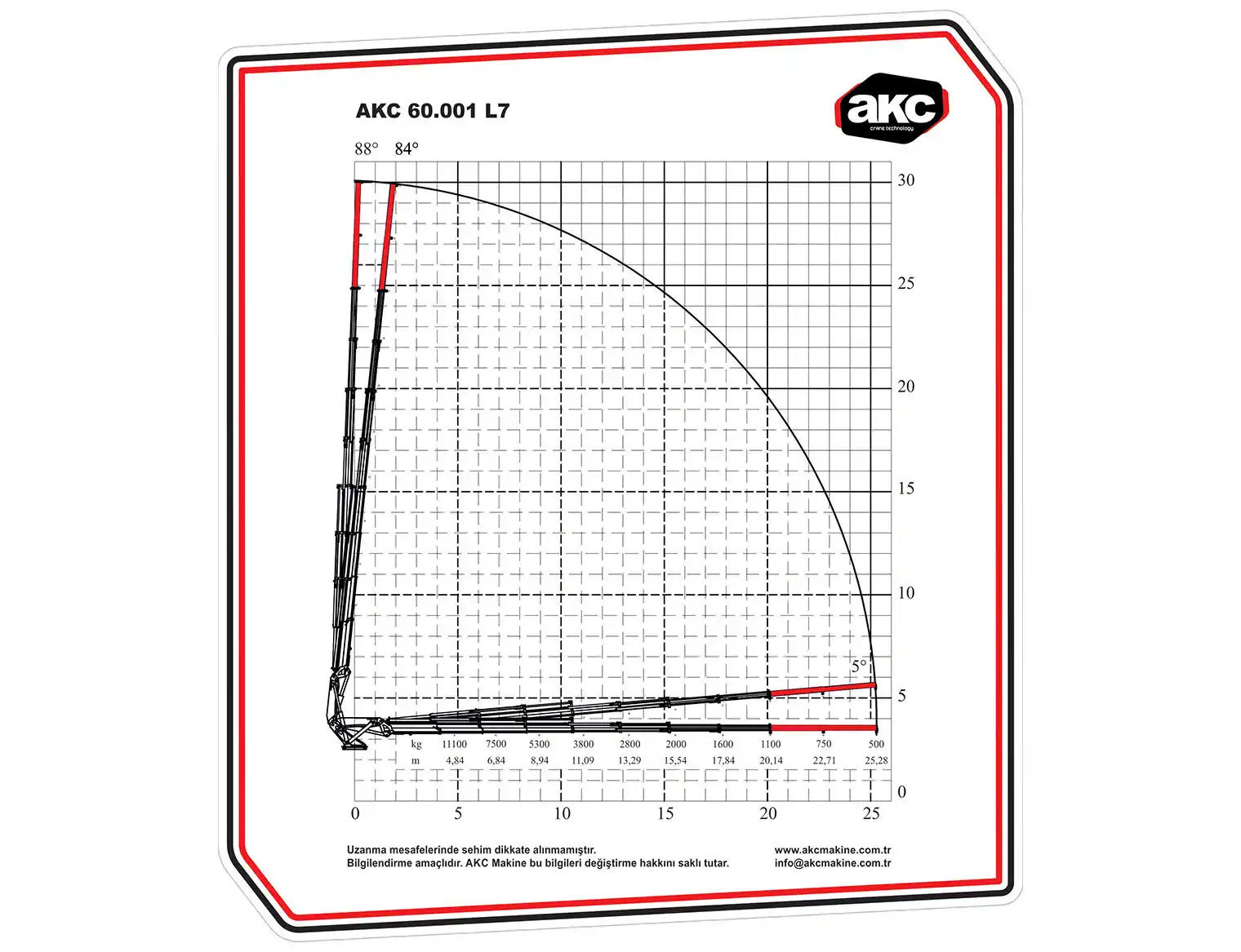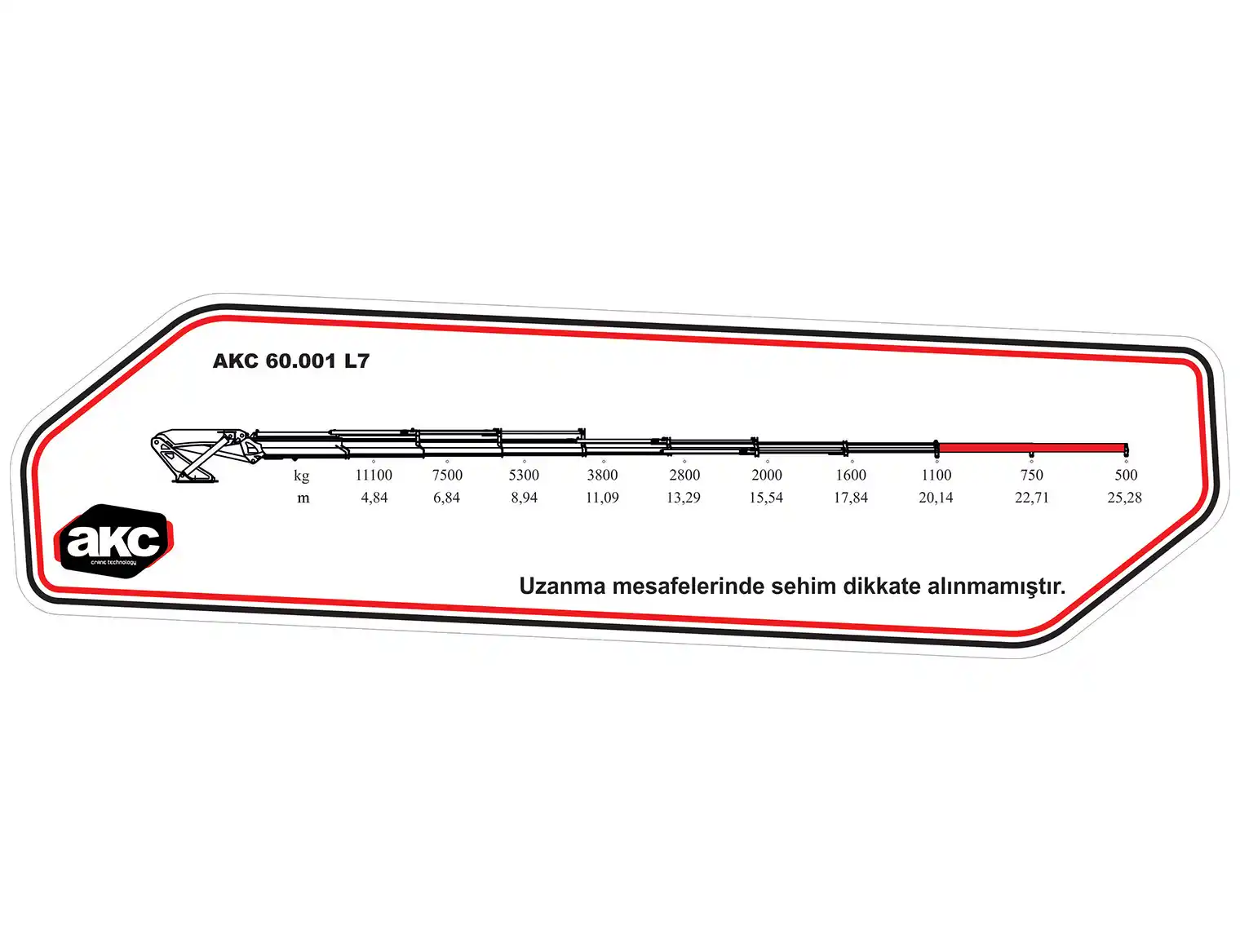 AKC 60.001 L7 Katlanır Bomlu Vinç, 7 kademeli hidrolik bom yapısı sayesinde geniş erişim imkânı sunarken, dar alanlarda yüksek manevra kabiliyeti sağlar. Güvenilir kaldırma performansı, dayanıklı gövde yapısı ve kullanıcı dostu kontrol mekanizmaları ile inşaat, lojistik ve endüstriyel projelerde iş verimliliğini artırır.
