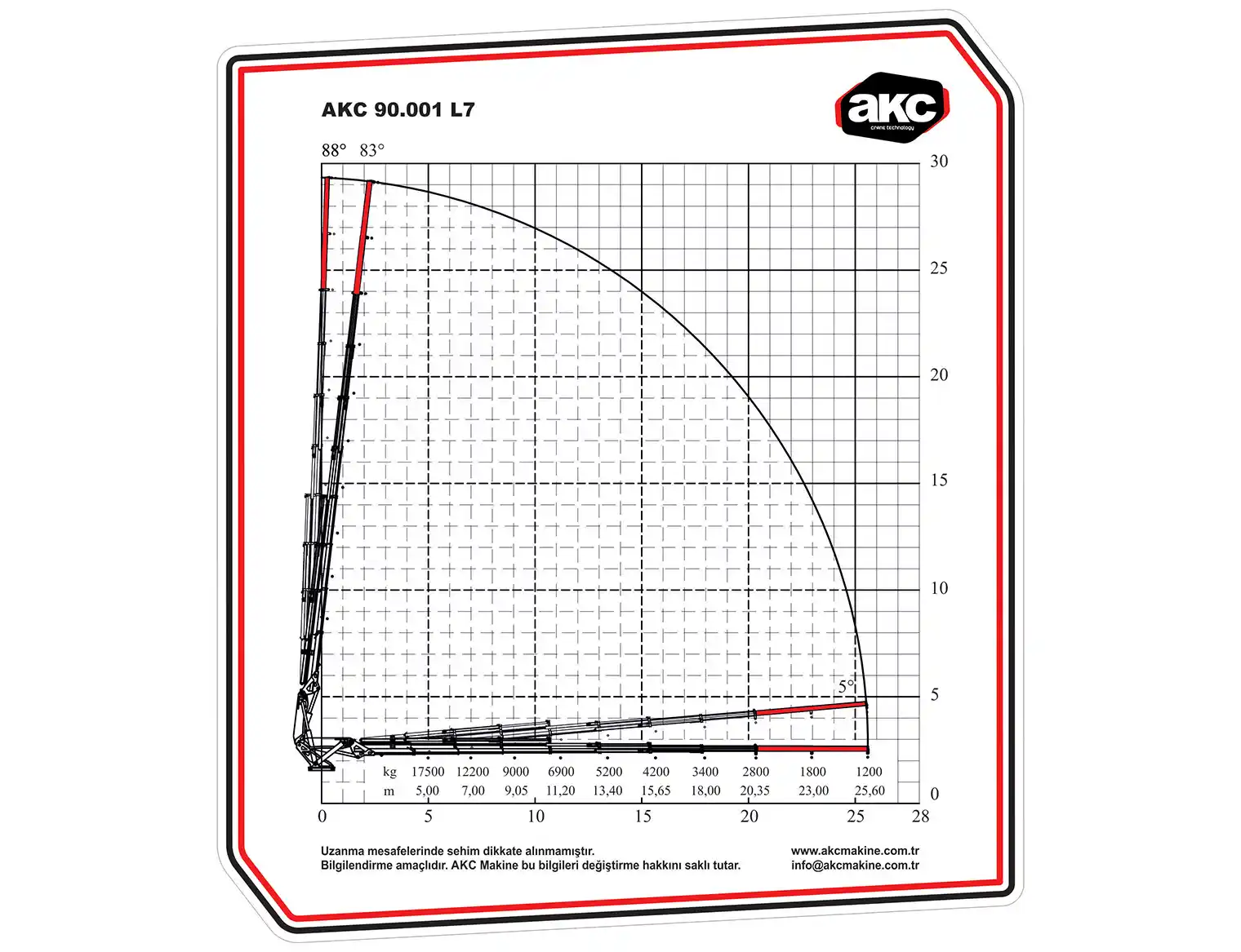 AKC 90.001 L7 Katlanır Bomlu Vinç, 7 kademeli hidrolik bom sistemi sayesinde geniş erişim kapasitesine sahip olup, dar alanlarda yüksek manevra kabiliyeti sunar. Güvenilir kaldırma performansı ve dayanıklı yapısıyla inşaat, lojistik ve endüstriyel projelerde iş verimliliğini artırır.