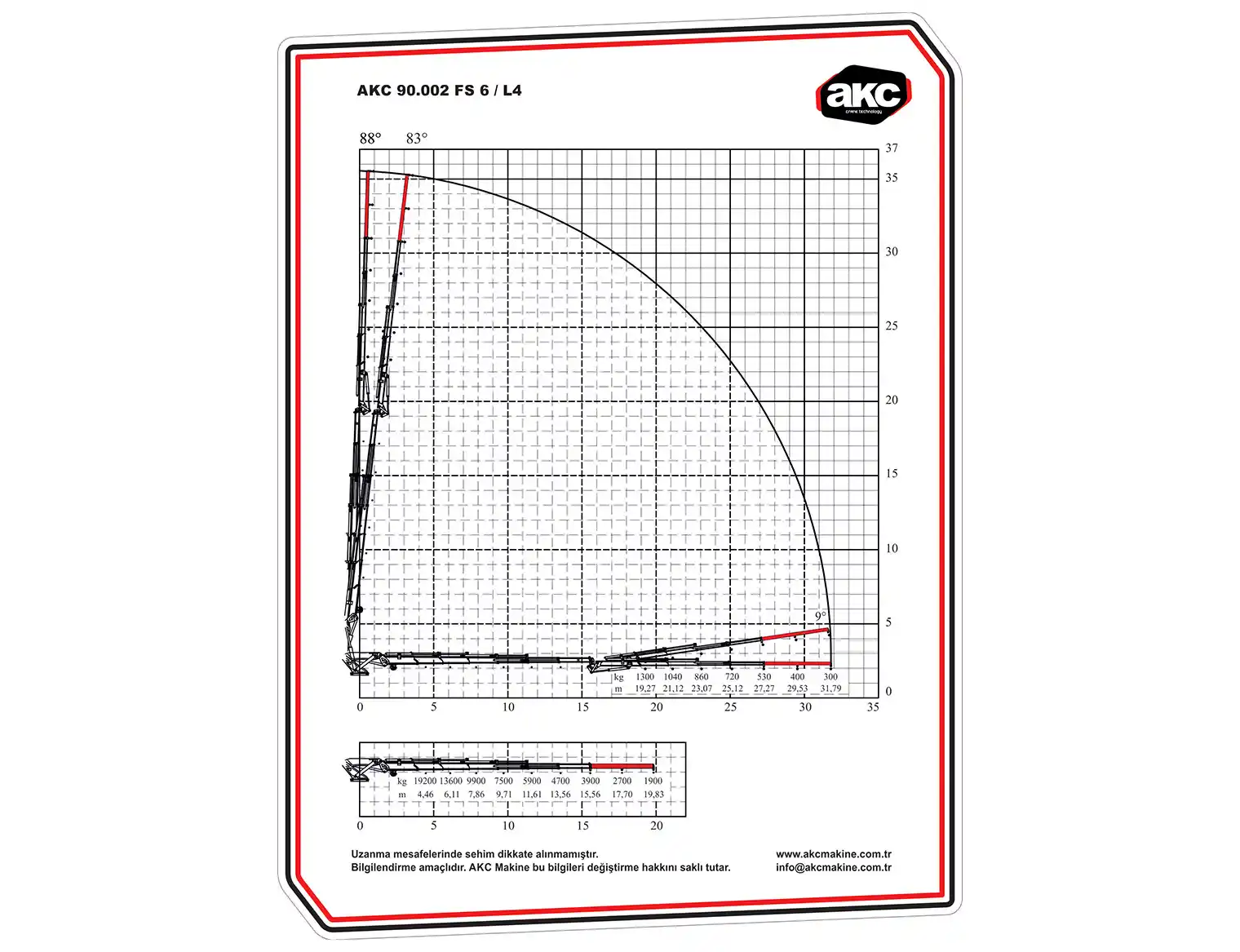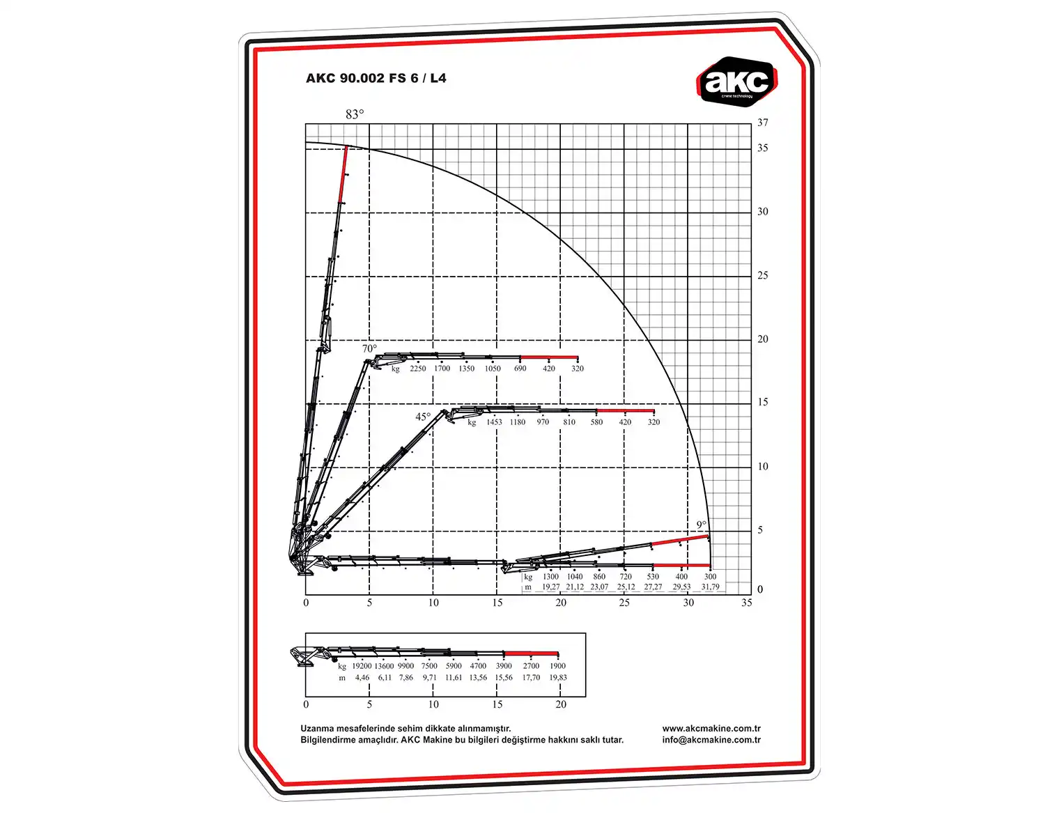 AKC 90.002 FS 6 / L4 Katlanır Bomlu Vinç, kompakt tasarımı ve çift kırma bom sistemi sayesinde hem dar alanlarda hem de geniş sahalarda üstün performans sağlar. Esnek erişim kapasitesi, yüksek manevra kabiliyeti ve güvenli kaldırma performansı ile inşaat, lojistik ve endüstriyel projelerde iş verimliliğini artırır.