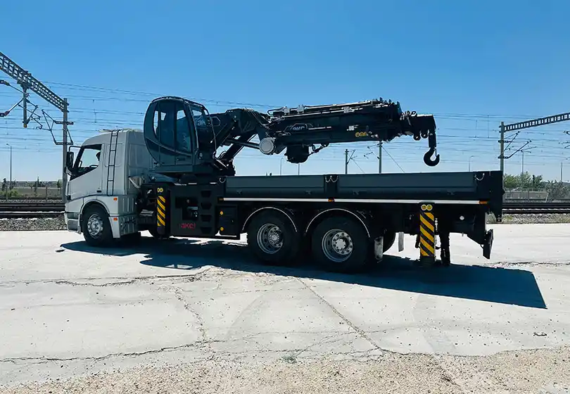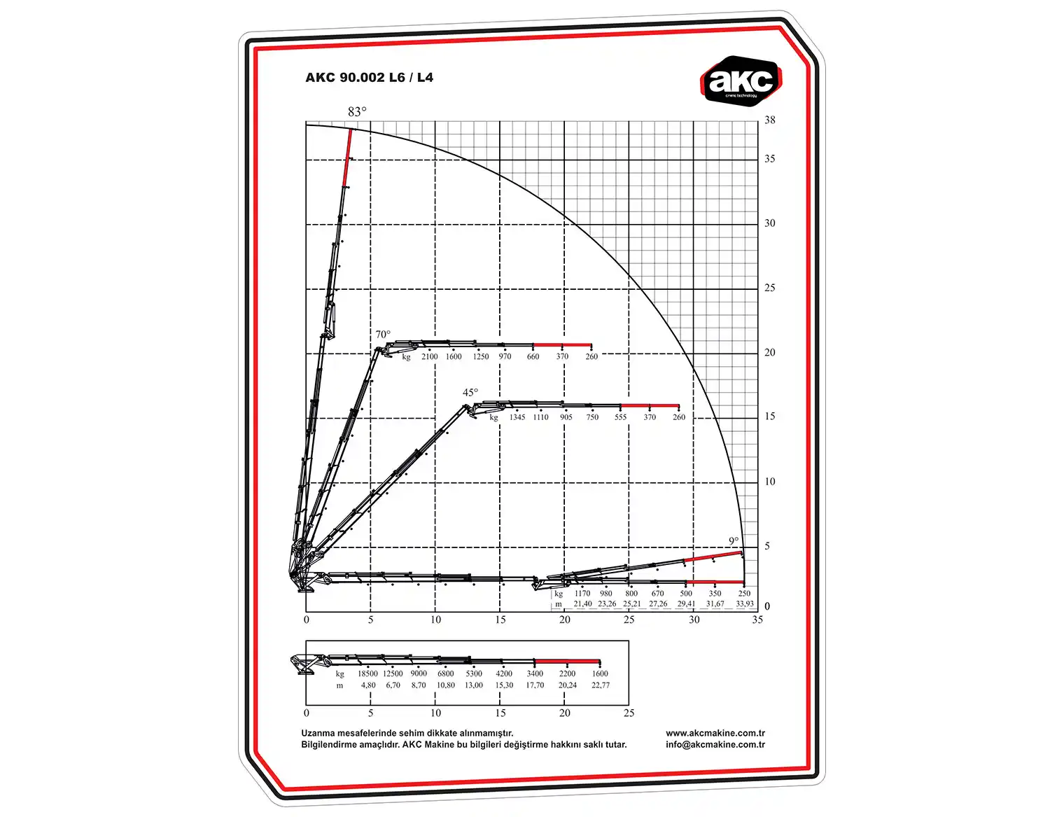 AKC 90.002 L6 / L4 Katlanır Bomlu Vinç, yüksek manevra kabiliyeti ve çift kırma bom yapısı sayesinde hem dar alanlarda hem de geniş sahalarda üstün performans sağlar. Geniş erişim imkânı, güvenilir kaldırma kapasitesi ve dayanıklı gövde yapısı ile inşaat, lojistik ve endüstriyel projelerde verimliliği artırır.